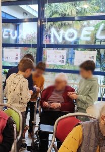 Les CM ont partagé un temps chaleureux avec les personnes âgées de la MARPA après leur avoir remis des bricolages de Noël ❤️.